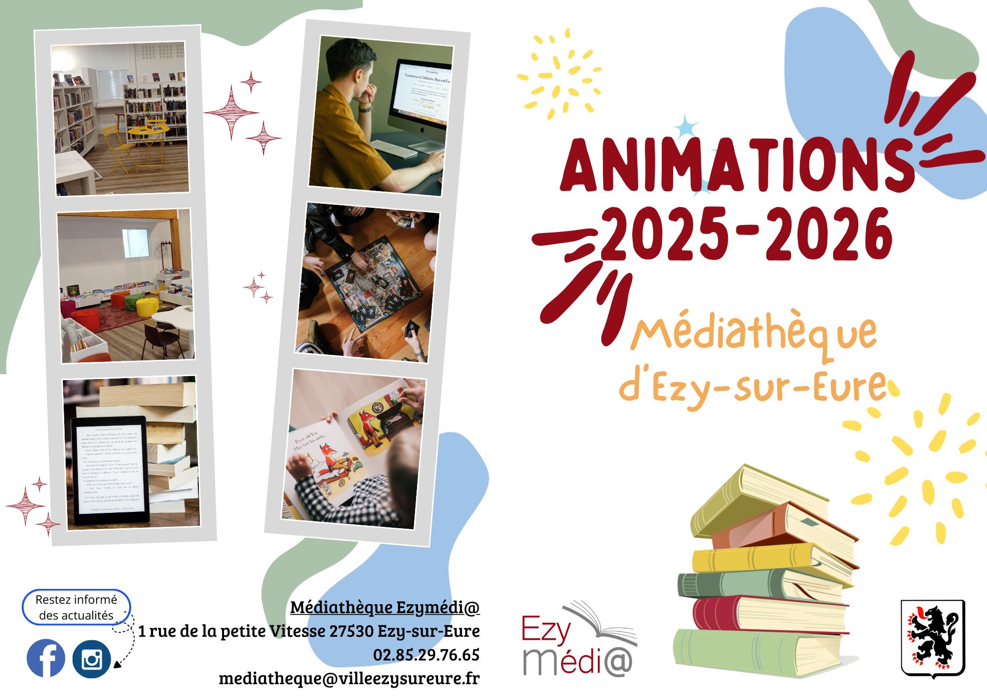 Ezymédi@, médiathèque d'Ezy-sur-Eure accueille gratuitement tous les publics, habitants d'Ezy ou des environs.